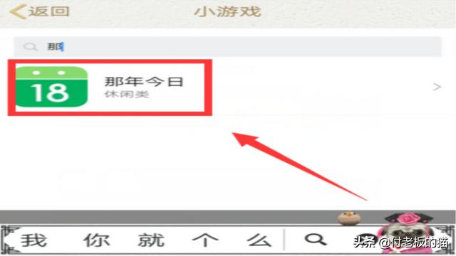 3、输入那年今日拼音进行搜索,如图,输入第一个字后就已经显示出来了,点击一下。