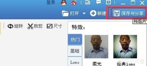 6、接下来点击右上角的“保存与分享”按钮,把刚刚制作的照片保存一下。