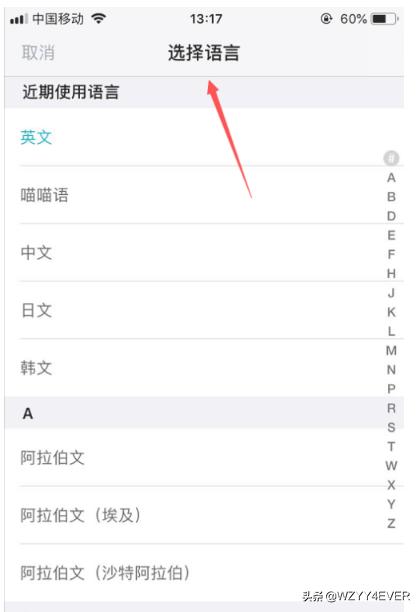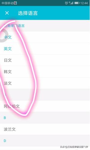 3、然后在选择语言页面里选择你需要的语言,如下图。