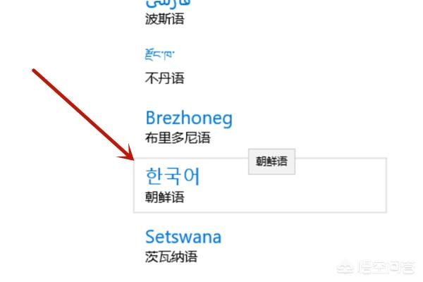 3、找到朝鲜语,双击,如图所示。