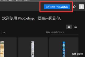 7、我们再次打开PSCC2019软件,这个时候我们发现左上角的试用7天没有了,那么我们就成功的安装上软件啦,接下来就可以正常使用了。如果一直在打转的小伙伴,我们点击左上角的PS图标,直接进入工作区就可以了。