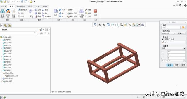 4、第四步,在功能区中选择【重力】,开始定义零件所受的重力。