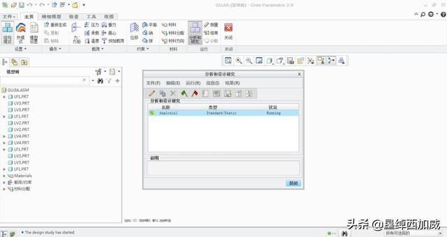 7、第七步,在功能区中【分析和研究】新建一个静态分析。即可以开始进行有限元分析了。