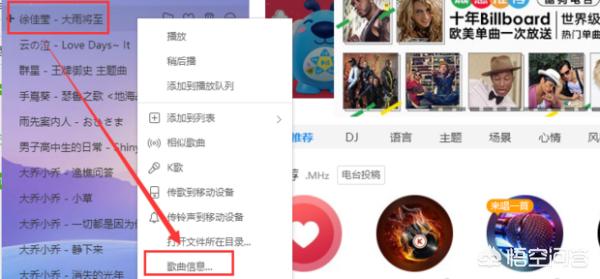 2、右键点击要转换的歌曲,出现的菜单中点击“歌曲信息...”;