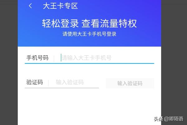 2.打开这个专区,会让你进行你所持的大王卡手机号码的登陆和认证。