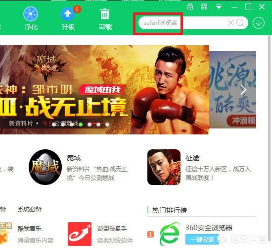 在360软件管家软件中可以下载safari浏览器,具体操作请参照以下步骤,演示软件为360软件管家。