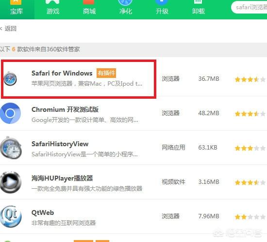 4、然后在搜索结果界面中找到safari浏览器,如图所示。