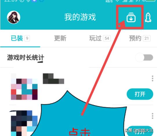 2、在我的游戏界面,点击顶部右边下载图标。如图所示