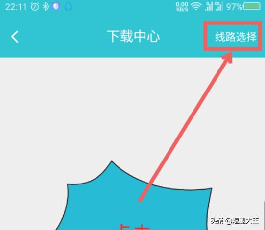 3、打开下载中心界面后,点击右上角的线路选择。操作如截图所示