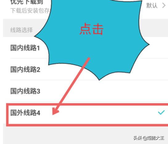 6、如果没有特别需要,不要切换国外线路,下载游戏会非常慢。如图所示