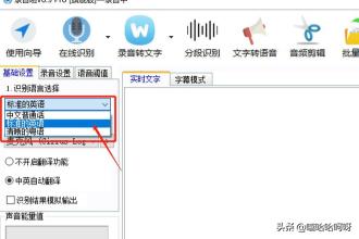 2、进入页面选择“识别语言选择”项,这里可识别中文、英文和粤语,选择其中“标准的英语”项,如下图所示;