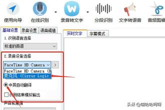 1、打开双击打开“录音啦”软件,点击“在线识别”右侧向下的按钮,选择“实时转换”,如下图所示;