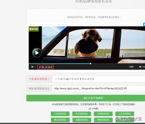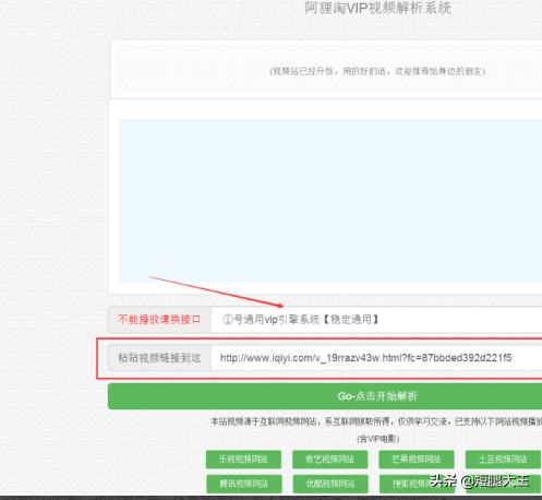 4、返回最开始的那个网站,把链接放上,选择好播放接口,点击 开始解析 便可以免费观看VIP视频完整版。