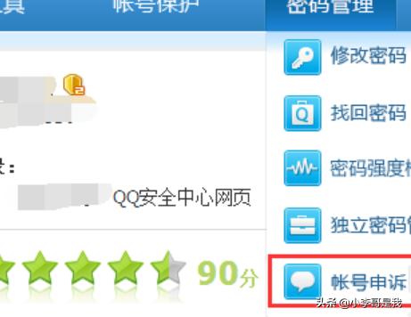 2、点击菜单栏里的【密码管理】选项,弹出下拉菜单,在下拉菜单里可以看到【账号申诉】选项。