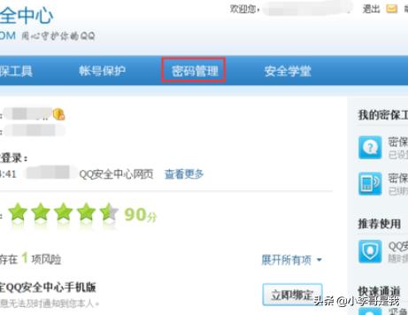 1、首先通过电脑浏览器登录QQ安全中心官方网站,可以在首页菜单栏内看到【密码管理】选项。