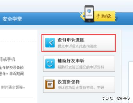 3、点击下拉菜单里的【账户申诉】选项,进入QQ安全中心账户申诉界面,在右侧可以看到【查询申诉进度】选项。