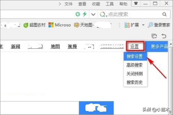 2、点击右上角的设置选项,选择搜索设置。