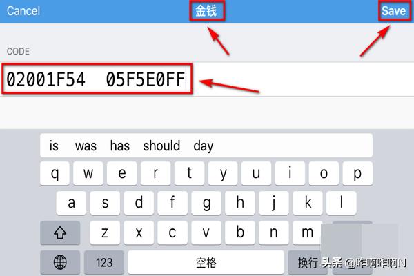 4、输入网上搜索的金手指代码,名称之后,点击save;