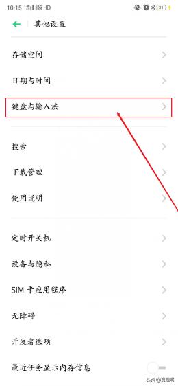 3、在其他设置界面中,用手指滑动屏幕,找到并点击键盘与输入法按钮。
