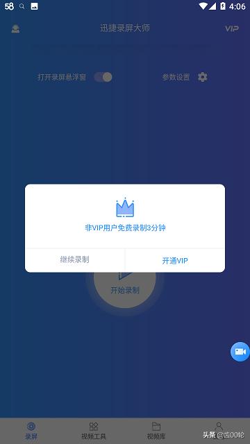 4、参数设置完了就可以返回主界面,点击【开始录制】进行录屏啦!非VIP用户可以录制3分钟的视频,如果想要录制长视频开通VIP就可以了。