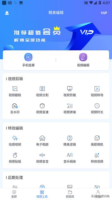 6、【视频工具】栏可以对录制的视频进行视频编辑、特效编辑和后期处理,功能还是很强大的。