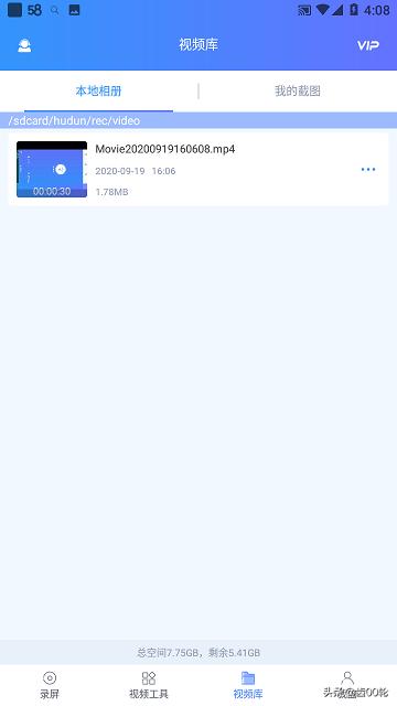 6.录制完成,点击界面底部的【视频库】选项,就可以找到录制好的视频。