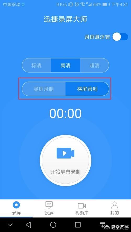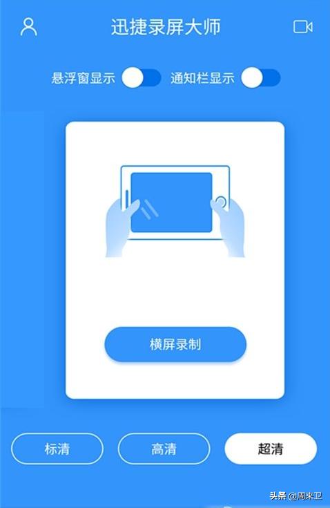 1.在手机上打开迅捷录屏大师,进入界面,先来设置录制视频画面的清晰度,选择录屏方向、是否横屏竖屏。