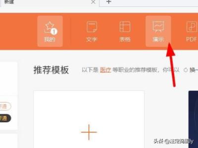 1、打开【wps客户端】,点击上方的【新建】选项-【演示文稿文档】,根据下方的提示进行操作。
