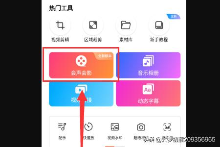1、首先,我们打开手机上的爱剪辑软件,进入首页,可以看到一个“会声会影”的选项,大家点击进入即可。