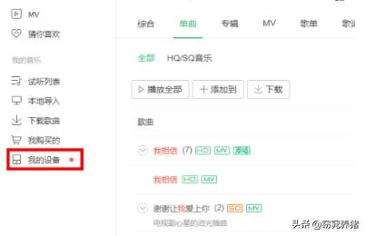 1、下载完歌曲以后点击我的设备