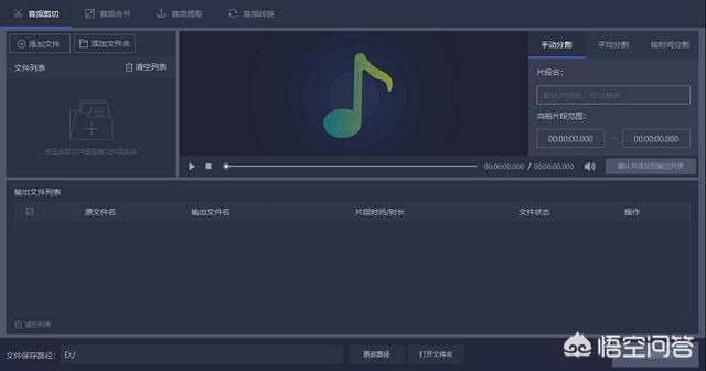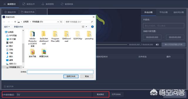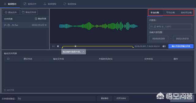 2.在剪辑界面的下方有一个“文件输出目录”,我们可以在剪辑音频前设置一下我们音频的存放位置,点击左边的文件夹按钮即可进行设置。