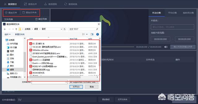 3.当我们的储存位置设置好后,我们点击界面中的“添加文件”或者是“添加文件夹”,将我们需要剪辑的音频文件给导入进来。
