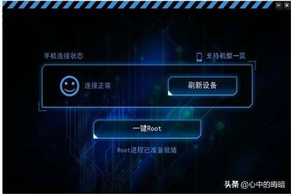 2、接下来使用一键root软件,像kingroot等,出现操作界面,手机与电脑连接正常后会显示“连接正常”;如显示设备未连接,请点击“刷新设备”就行。